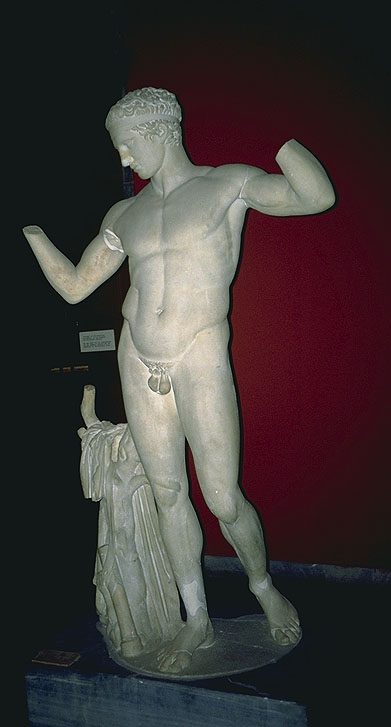 "קושר הסרט", Diadoumenos , העתק שיש רומי מהמקור מברונזה, 450 לפנה"ס בערך.
