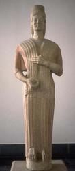 פסל שיש של אישה מדלוס, (כנראה דמות האלה הרה), שיש, 660- 650 לפנה"ס, כיום - המוזיאון הארכיאולוגי הלאומי, אתונה.