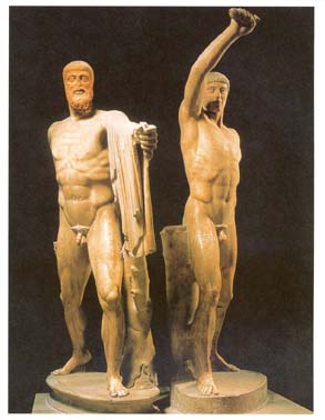 "הורגי הטיראנים". העתק רומי שנעשה מפסלי הברונזה המקוריים כנראה בשנת 477 -476 לפנה"ס. כיום נמצא במוזיאון מטרופוליטן לאמנויות בניו-יורק.