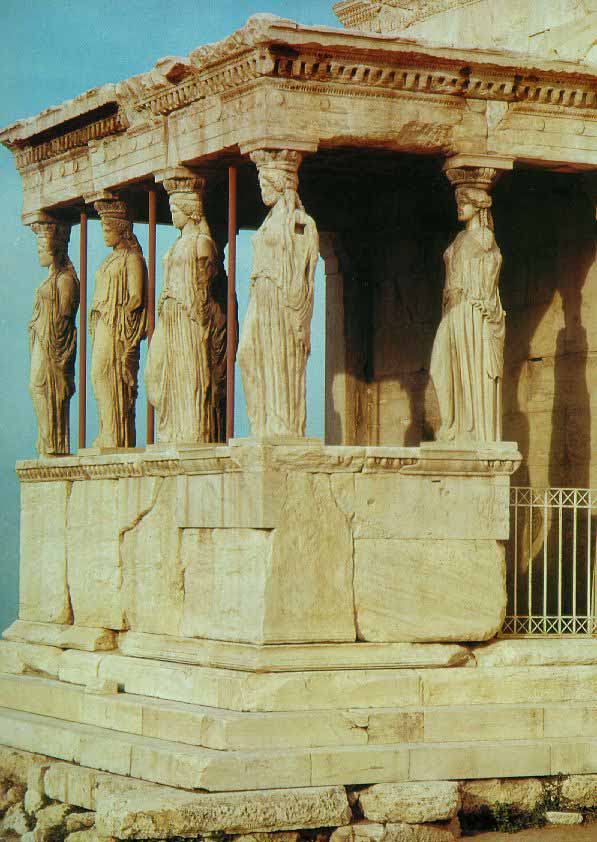 המרפסת הדרומית או "מרפסת הקאריאטידות", מקדש הארכתיאון האקרופוליס, באתונה, 420- 413 לפנה"ס בערך.
